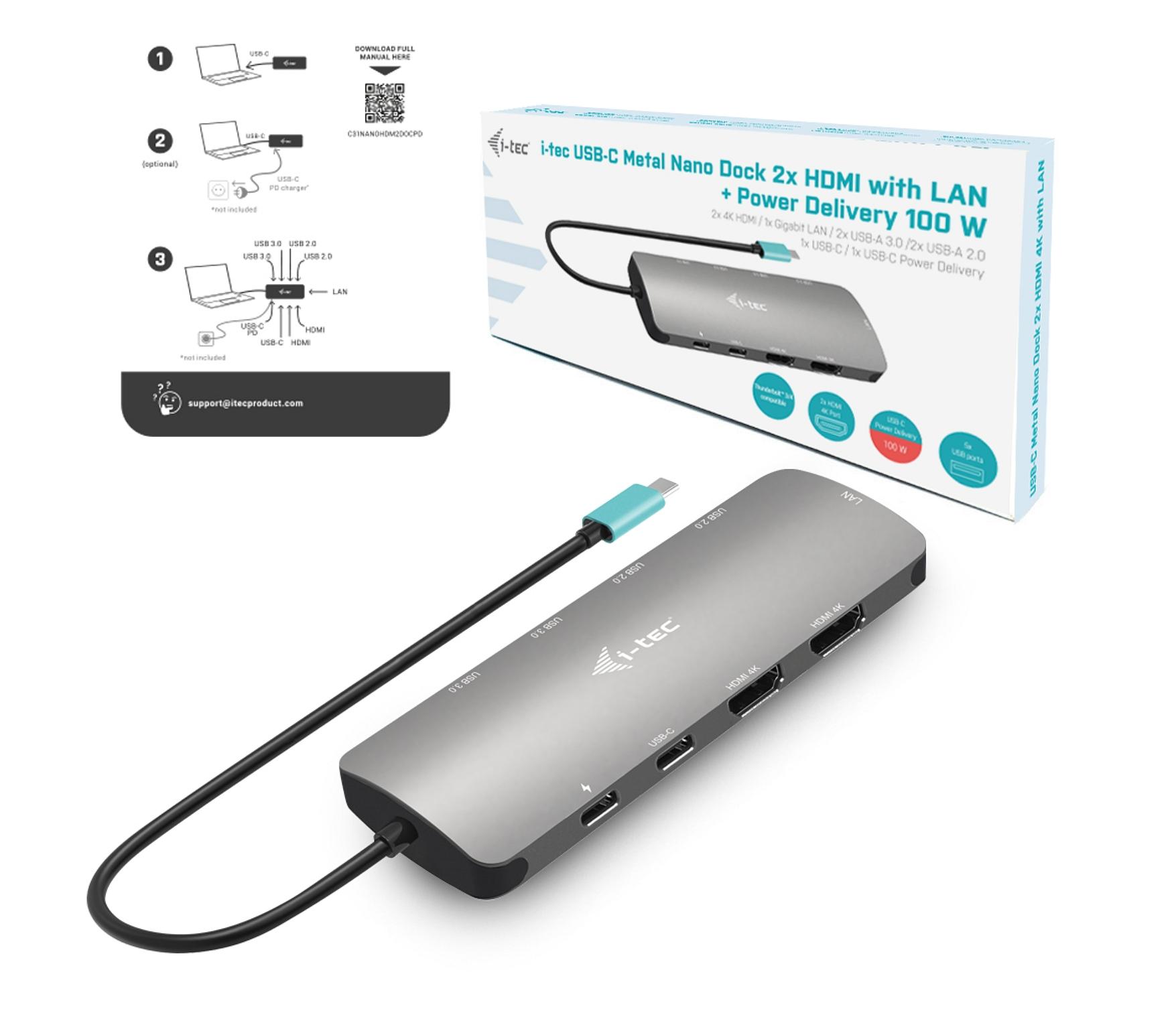 Dokovací stanice I-TEC USB-C Metal Nano 2x HDMI Docking Station, PD 100W