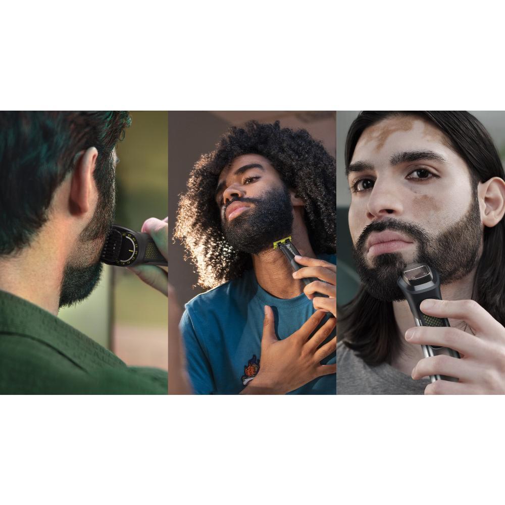 Všestranný zastřihovač Philips Series 9000 během chvíle a s maximálním komfortem upraví všechny tělesné partie k vaší spokojenosti. Obsahuje řadu nástavců speciálně navržených pro přesnou úpravu vousů, vlasů a chloupků na těle. S těmi jednoduše upravíte zevnějšek podle svých představ. Délku můžete stupňovat v krocích po 0,2 mm a zastřihovat tak s vysokou přesností. Precizní hřebenový nástavec zastřihuje velmi blízko pokožce. Na výběr máte celkem 11 délek v rozmezí 1 až 3 mm pro maximálně rovnoměrné zastřižení. To vše bez nepříjemného tahání či škubání, a to i dlouhých vousů. Technologie OneBlade má totiž speciální povrchovou úpravu pro hladký skluz po pokožce a zaoblené hroty zabraňující pořezání.