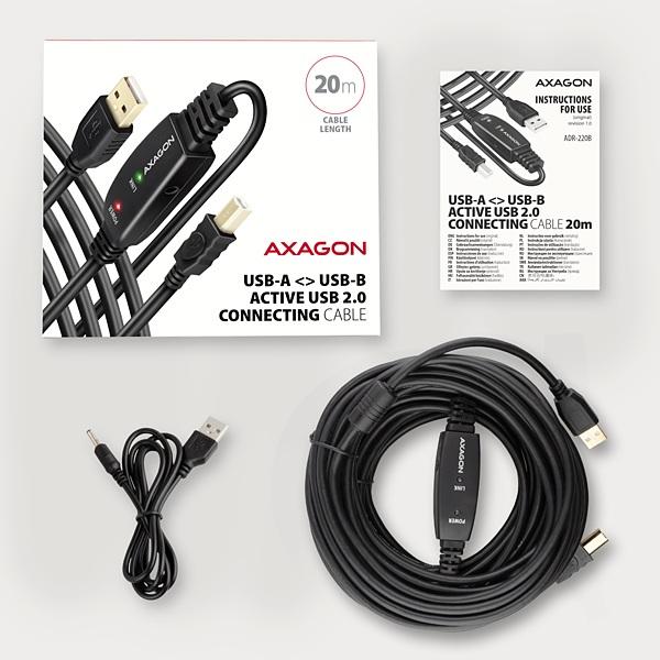 Propojovací aktivní kabel AXAGON ADR-220B, USB 2.0 A-M -> B-M 20m