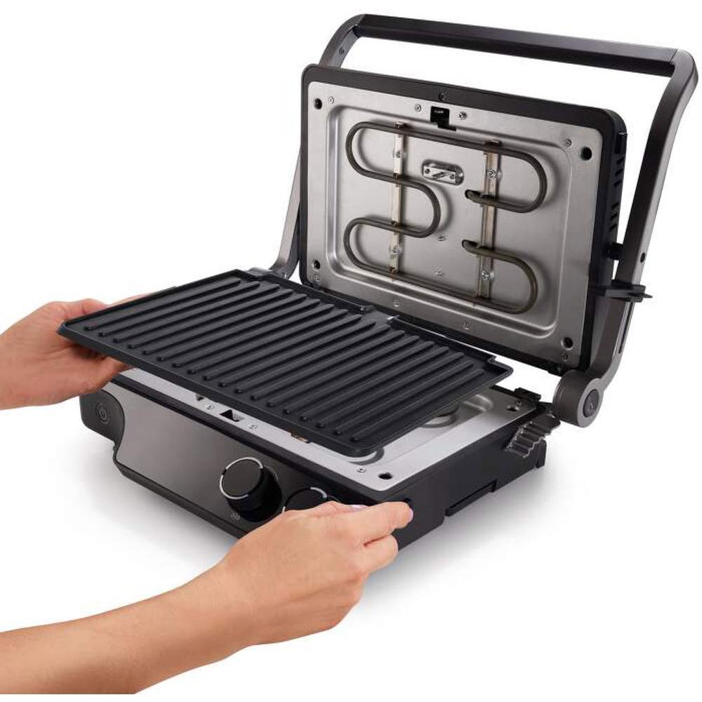 Kontaktní gril Hisense HCG2000XL je vybaven přehledným LED ovládacím panelem, který umožňuje snadné nastavení teploty. Můžete si tak jednoduše a rychle přepnout různé programy nebo upravit teplotu, aby bylo vaše jídlo propečené přesně podle vašich představ. Nepřilnavé desky s teflonovým povrchem lze individuálně nastavit na teplotu od 80 do 230 °C, což umožňuje připravovat různé druhy potravin současně. Staňte se mistrem grilování bez zbytečné námahy a překvapte svou rodinu či přátele plným stolem dobrého jídla.