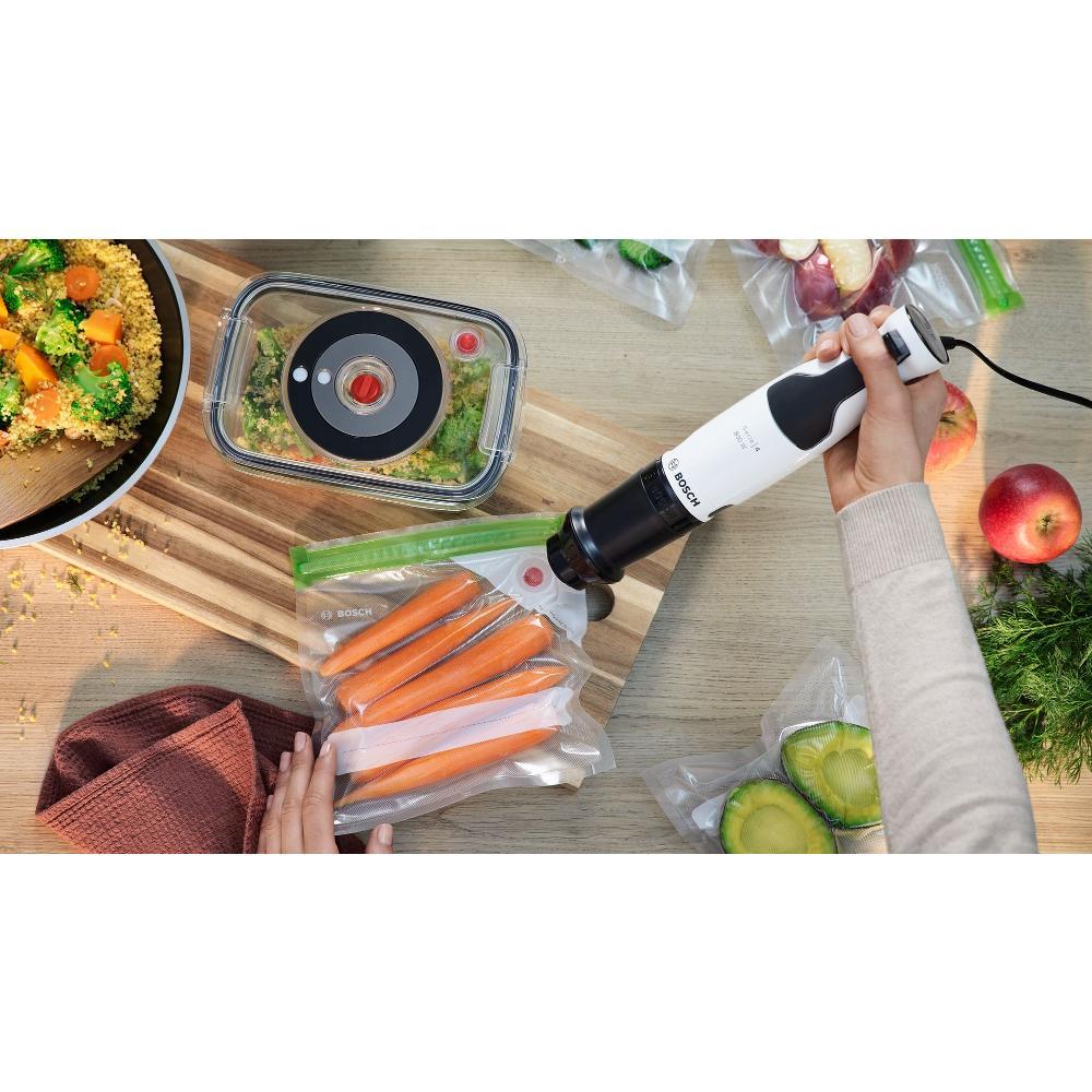 S tyčovým mixérem Bosch MSM4W410 se systémem QuattroBlade Pro bude mixování prostě hračka. Speciálně navržený tvar mixéru a jeho nízká hmotnost vám zajití maximální pohodlí během používání. Technologie AntiSplash pak zamezí nechtěnému stříkání surovin. Tvar mixovací nohy pak krásně přilne ke dnu nádoby. Už žádné šplíchance a nepořádek okolo. Rychlost si plynule regulujete pákovým spínačem, který reaguje na sílu stisku a je velmi intuitivní. Ovládání v pohodě zvládnete jednou rukou – ať už pravou či levou. Rukojeť je navíc opatřena protiskluzovým měkčeným materiálem s ergonomickým tvarem pro maximální pohodlí při práci.