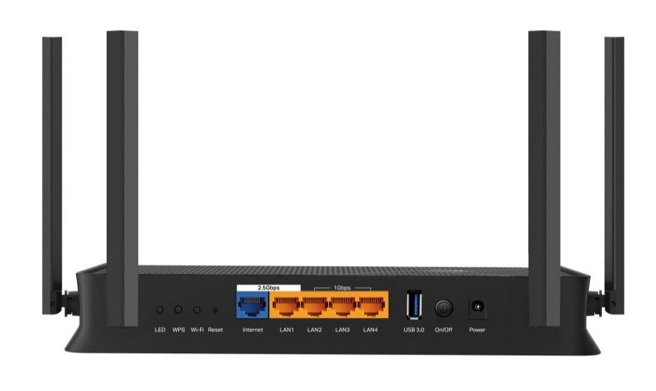 2× 2,5G porty: 1× port WAN 2,5 Gb/s, 1× port LAN 2,5 Gb/s a 3× port