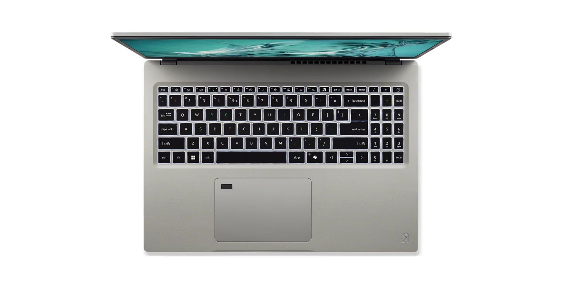 Notebook Aspire Vero 16 je inspirován houževnatostí pobřeží a jeho šasi je důmyslně vyrobeno ze směsi více než 70 % PCR a biologického materiálu z lastur ústřic spolu s touchpadem z plastu sesbíraného v oceánech. Vypovídá o úloze přírody jako inspirace inovací.