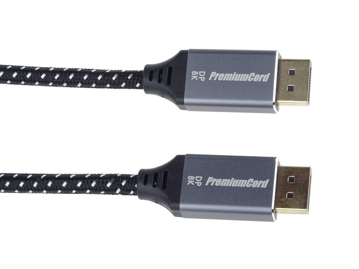 PremiumCord DisplayPort 1.4 přípojný kabel M/M pro rozlišení 8K, kovové krytky a zlacené konektory, 2m
