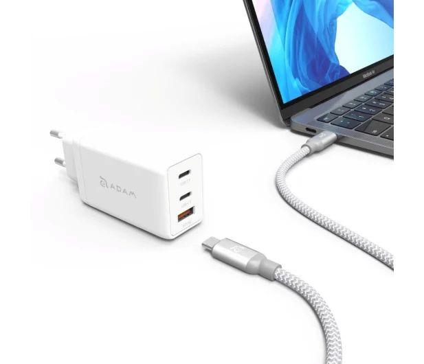 dobíjet až tři zařízení současně. Nabíječka je dodávána s USB-C/USB-C