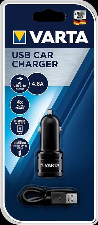 Nabíječka do auta VARTA nabíjecí autoadaptér, 2x USB, 4800mA max., DC 12V, černý
