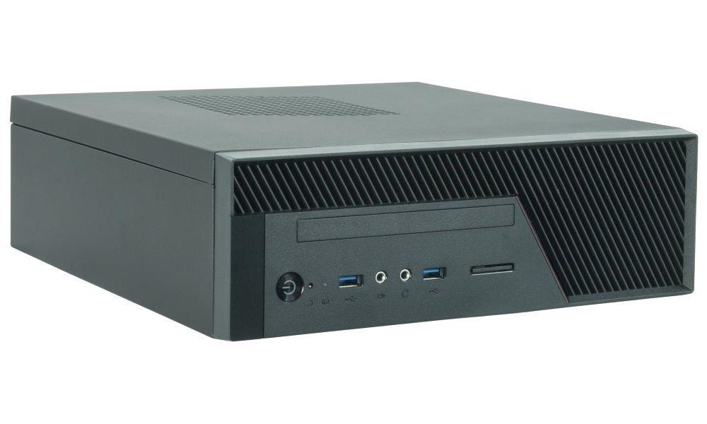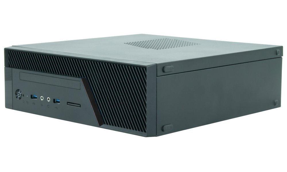 Počítačová skříň formátu Mini ITX nabízí na předním panelu dva porty USB 3.0, konektor pro sluchátka a konektor pro mikrofon. Dipsonuje jednou externí pozicí formátu 5,25". Skříň je dodávána s 250 W zdrojem GPF-250P.