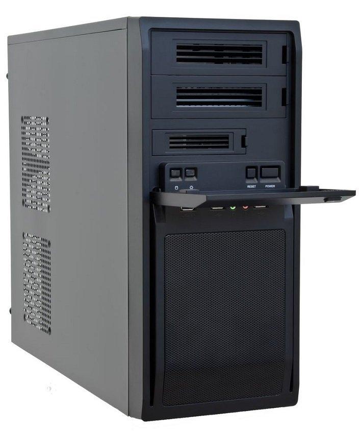 Počítačová skříň formátu Middle Tower nabízí na předním panelu porty USB 2.0, USB 3.0, konektor pro sluchátka a konektor pro mikrofon. LG-01B-OP nabízí dvě externí pozice formátu 5,25" a jednu 3,5". Skříň je dodávána bez zdroje.