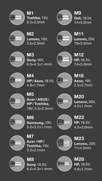 Vyberte si jeden ze 16 přiložených konektorů, který bude vhodný pro nabíjení Vašeho zařízení. Díky úžasné délce přívodu 2,7m je adaptér tak pohodlným doplňkem doma i na cestách, kde zásuvky nemáte vždy po ruce.