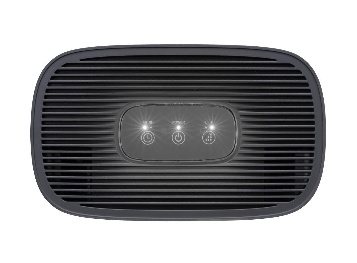 Odvlhčovač OV1000 zvládne zkondenzovat až 600 ml vody za jediný den. Po naplnění 1,5 l nádobky se přístroj automaticky vypne. Pokud je zásobník špatně vložen, či chybí, rozsvítí se červená kontrolka.