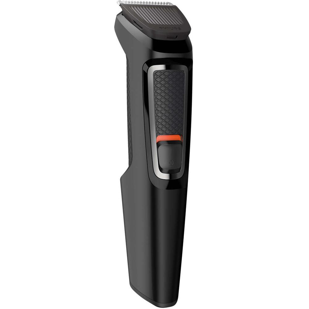 Multifunkční el. zastřihovač Philips řady 3000 7v1: 4 nástavce pro zastřihování vousů - 1, 2, 3 a 5 mm; nástavec pro zastřihování vlasů 9 mm; nástavec pro zastřihování chloupků v nose a uších, doživotně ostré samoostřící čepele, Výdrž: 60 minut, barva: černá, příslušenství: cestovní pouzdro.
