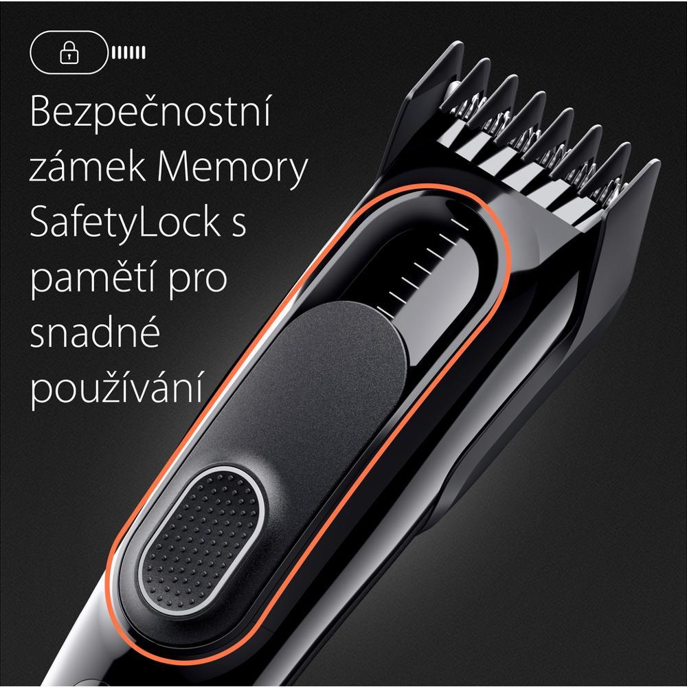 Zastřihávač vlasů, 9 nastavitelných délek, 1 nástavec, plně omyvatelný, paměťový bezpečnostní zámek