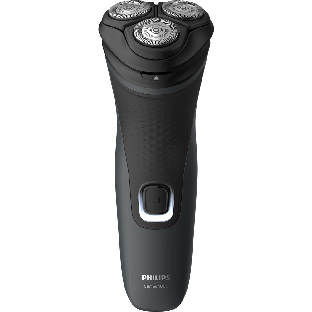 Pánský elektrický holicí strojek Philips řady 1000 pro suché holení. Výdrž: 40 minut/8h nabíjení. Hlavy 4D Flex otočné ve 4 směrech pro kopírování křivek tváře. LED indikátor nabití. Použití s kabelem/bez kabelu. Ergonomická rukojeť. Barva: tmavě šedá.