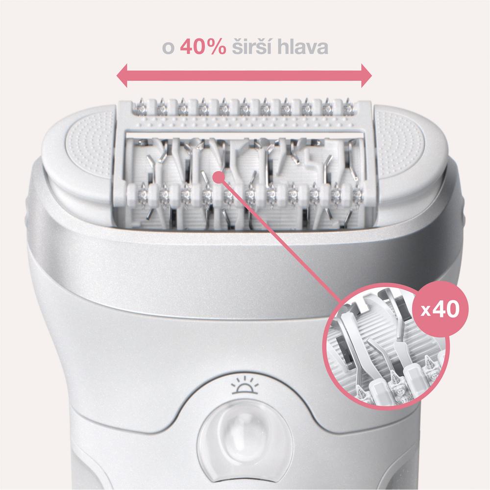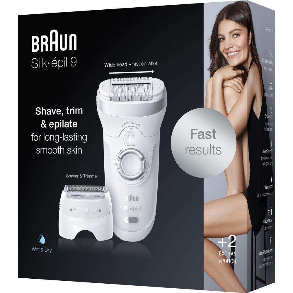Epilátor Braun Silk-épil 9-705 se širokou hlavou pro extra rychlou epilaci. Užijte si týdny trvající pocit hladké pokožky jako ze salonu díky technologii pinzet Micro-Grip a o 40 % širší hlavě, která odstraňuje chloupky o délce pouhých 0,5 mm. Hlava holicího strojku a zastřihovací nástavec poskytují další možnosti pro úpravu citlivých oblastí, epilátor je navíc 100% voděodolný, což znamená, že se můžete téměř bezbolestně epilovat ve vaně či sprše.
