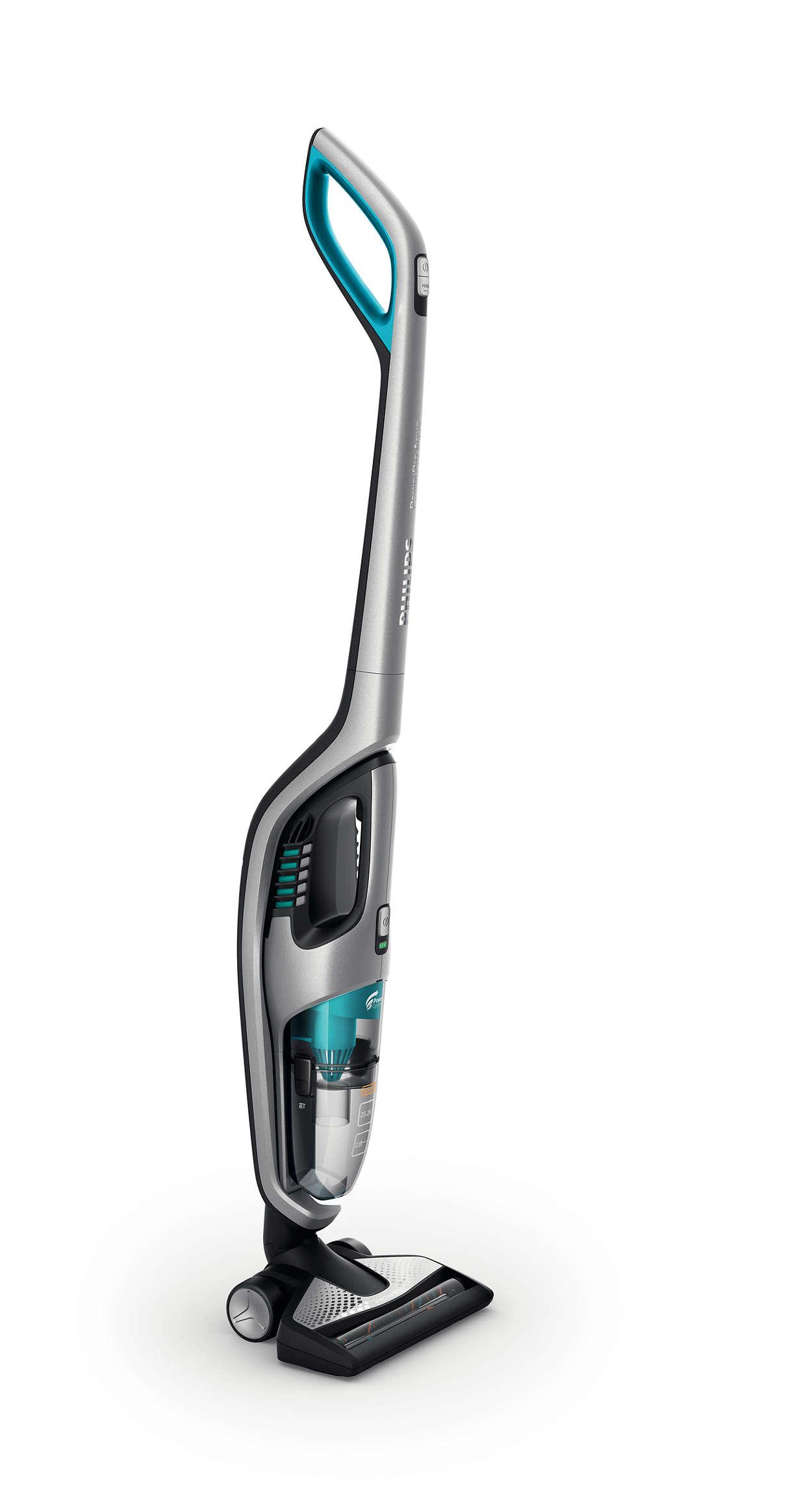S výkonným 25,2V lithium-iontovým akumulátorem můžete vysávat bez kabelu až 1 hodinu. Nabíjení je možné kdykoli, není nutné čekat na vybití akumulátoru.