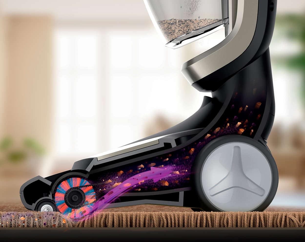 Hubice TriActive Turbo poskytuje skvělý výkon při vysávání tvrdých podlah a koberců. Motorizovaný kartáč a optimalizované proudění vzduchu se postarají o odstranění veškerého prachu a nečistot jedním pohybem.