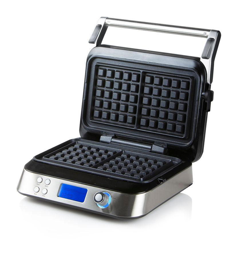 Domácí vaflovač se kterým zvládne upéct vafle jako profesionál úplně každý. Díky digitálnímu ovládání s přehledným velkým LCD displejem vždy víte jaký program jste zvolili a za jak dlouho a jak hodně budou vafle opečené. Digitální vaflovač využívá vnitřního termostatu ke korekcím vhodné teploty právě dle zvoleného programu a stupně opečení, aby výsledek byl vždy dokonalý. Vlastní program pak umožňuje vlastní nastavení stupně opečení (teploty pečení) bez omezení doby pečení. Digitální hodiny vás pak neustále informují o uběhlém, nebo zbývajícím času.
