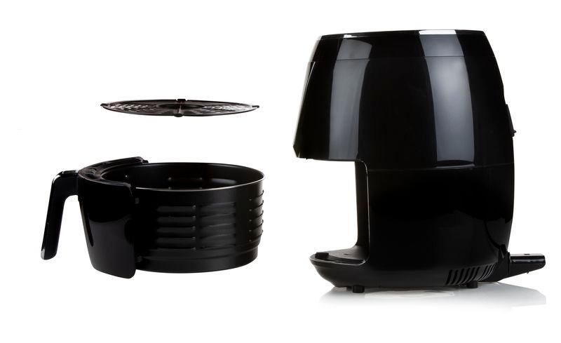 Horkovzdušná fritéza s digitálním ovládáním pro přípravu pokrmu z až 1,2 kg surovin v objemné fritovací nádobě. Díky integrování fritovacího koše přímo do fritovací nádoby bylo možné u fritézy zachovat kompaktní vnější rozměry a využít tak prostor na maximum. Fritovací koš tak nahrazuje vyjímatelné dvojité dno ve formě snadno vyjímatelné mřížky. Jak fritovací nádoba tak mřížka jsou opatřené nepřilnavým povrchem. Vypečený tuk a šťáva zůstávají v nádobě pod mřížkou.