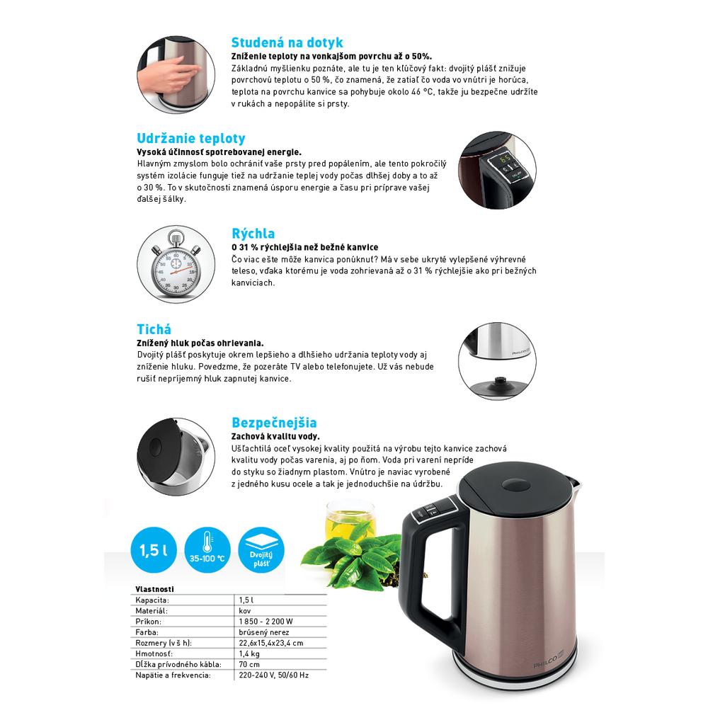 Rychlovarná konvice PHILCO PHWK 1700, nerezová