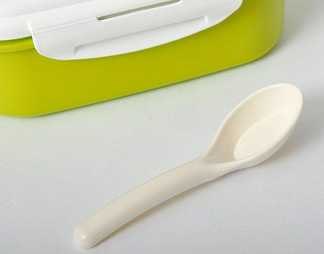 ohřev v mikrovlnné troubě. Lžička pro kunzumaci z boxiku. Použitelný pro