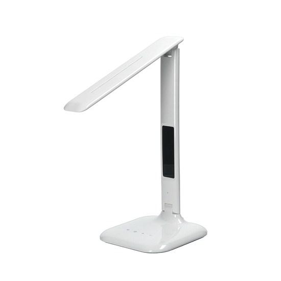 LED stolní lampa stmívatelná s displejem SOLIGHT WO43, bílý lesk
