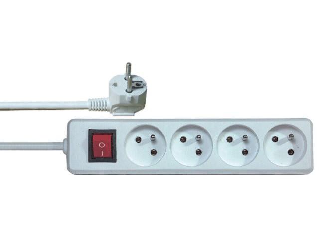 Prodlužovací přívod, 4 zásuvky, bílý, vypínač, 1,5m