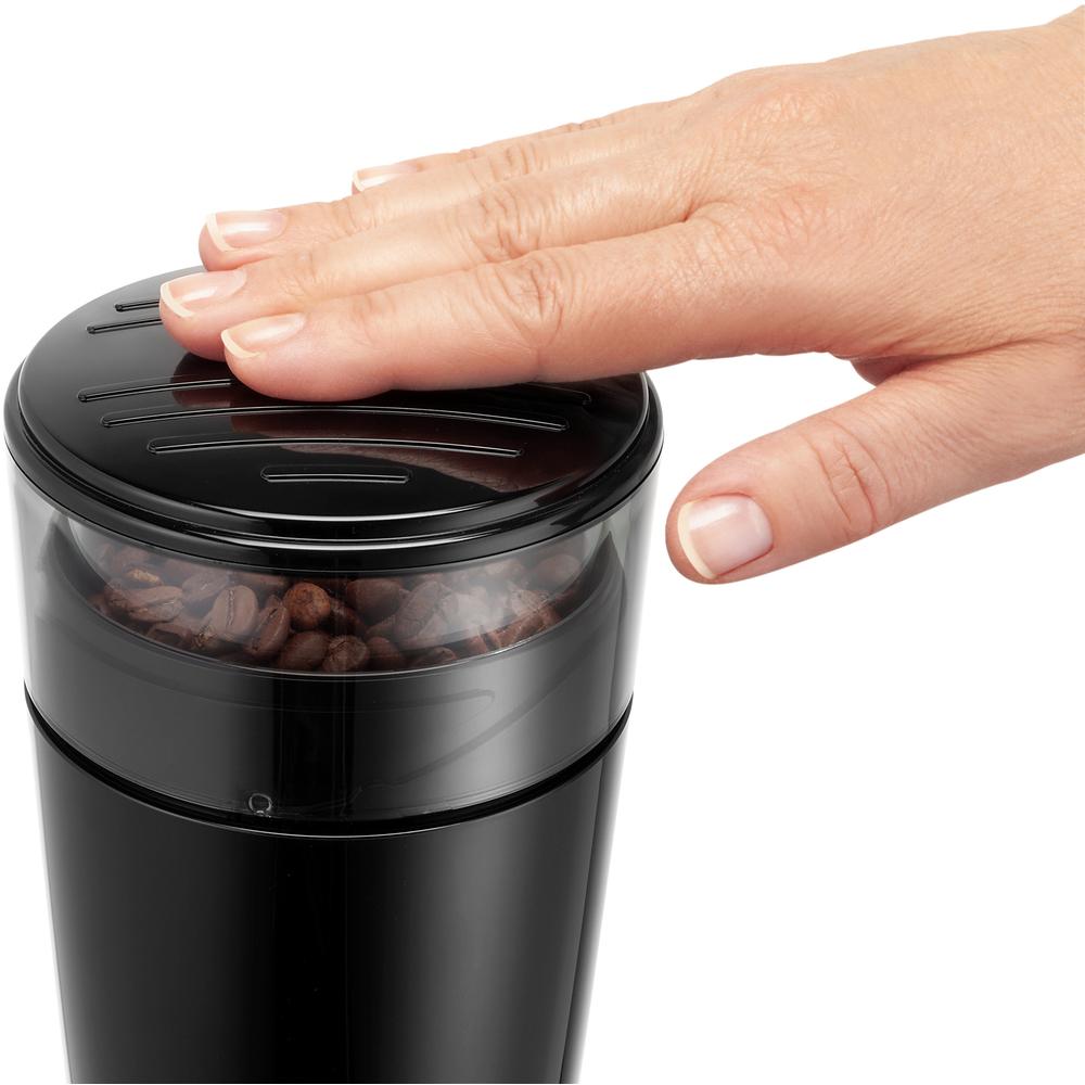 Elektrický mlýnek na kávu s nerezovými noži, Systém “ Push – to grind”, nastavitelné množství šálků: 1-12, kapacita nádobky 100g, štěteček na čištění součástí balení