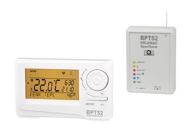 Bezdrátový programovatelný termostat disponující velkým podsvíceným LCD displejem pro snadné nastavení a ovládání. BT52 je určen pro řízení plynových a elektrických kotlů, které využívají komunikačního protokolu OpenTherm plus (OT+). Skládá se z přijímací části s barevnou LED indikací všech stavů a vysílací části, umožňující výběr jednotlivých funkcí. Inteligentní časovač zaručuje určenou teplotu v požadovaném čase, zatímco adaptivní regulátor vyhodnocuje teplotní gradient místnosti a umí určit dobu nezbytně nutnou k dosažení požadované teploty. Napájení je řešeno skrze dvě tužkové AA baterie.