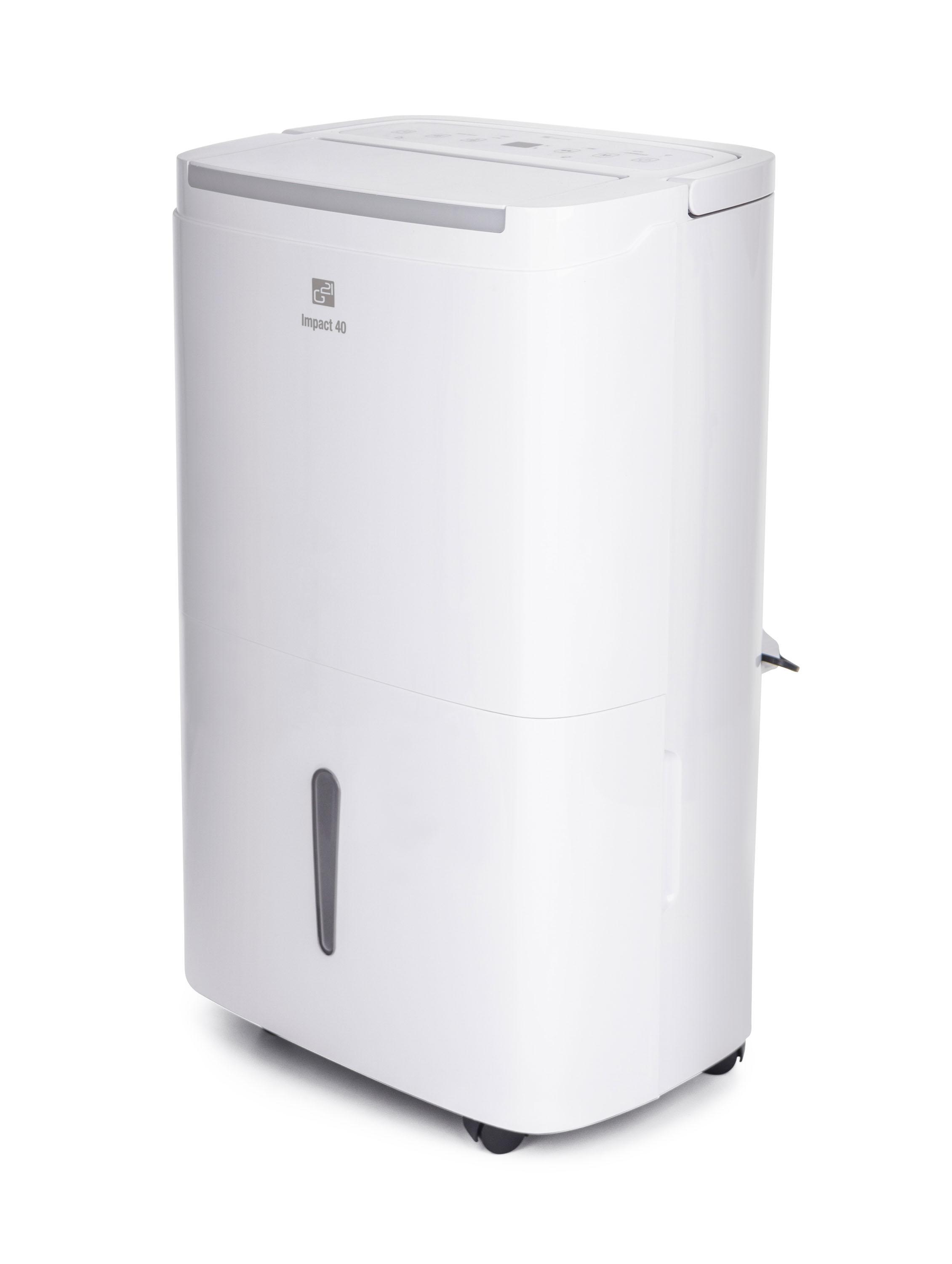 Odvlhčovač vzduchu G21 Impact 40 od české značky G21 má kapacitu 40 l za 24 hodin. Je vybaven 7l, dostatečně velkou nádržkou na kondenzát s průhledným indikátorem stavu. Pozorovat jej však ani nemusíte – odvlhčovač se při naplnění nádržky sám vypne. Odvlhčovač používá ekologické chladivo R290, které nepoškozuje ozónovou vrstvu.