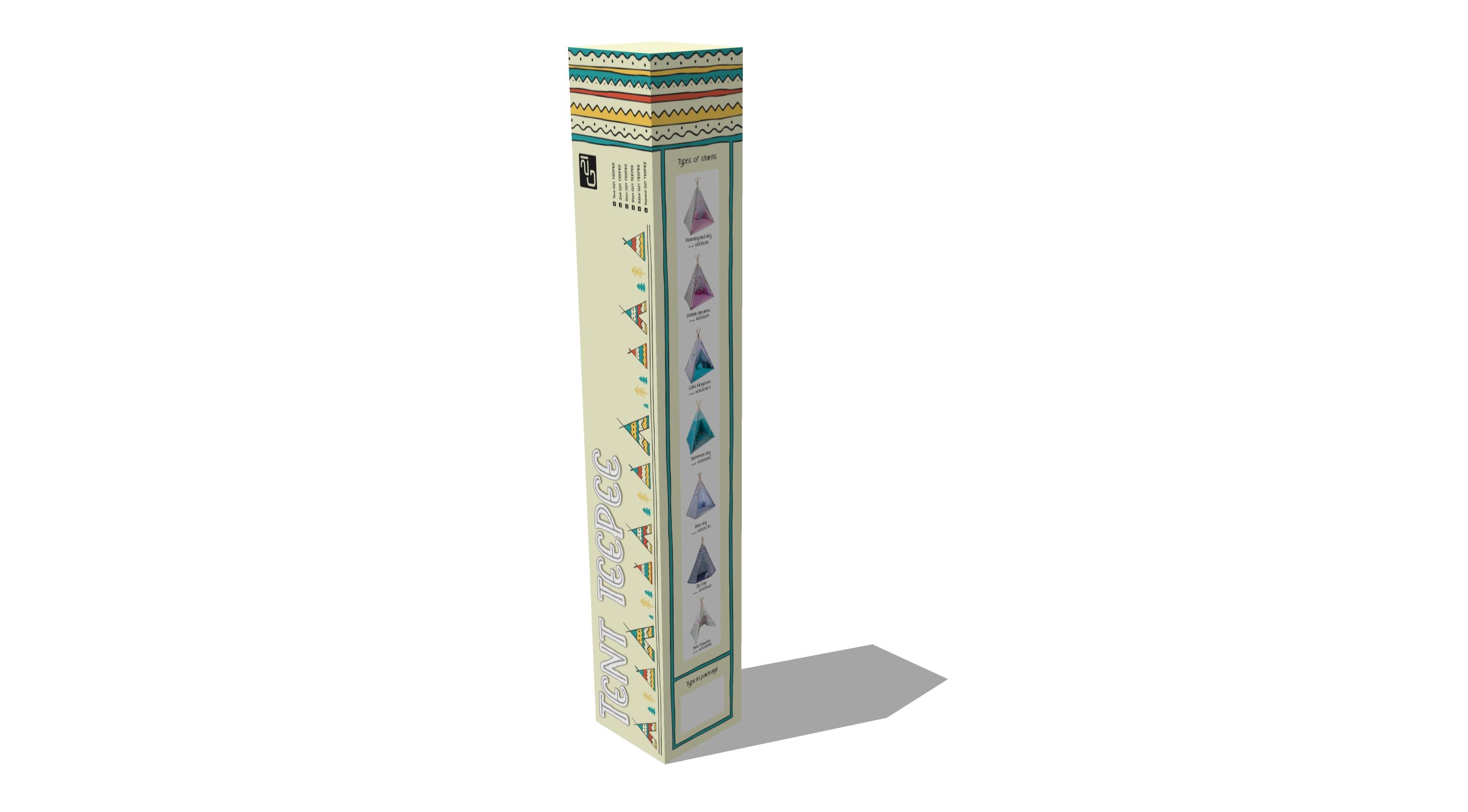 Dětské teepee, Materiál stanu: polyester 100g/m2 Materiál tyčí: dřevo Délka tyčí: 185 cm Výška stanu: 160 cm Rozměry podlahy: 120 x 120 cm Barva: modrá Hmotnost: 3 kg
