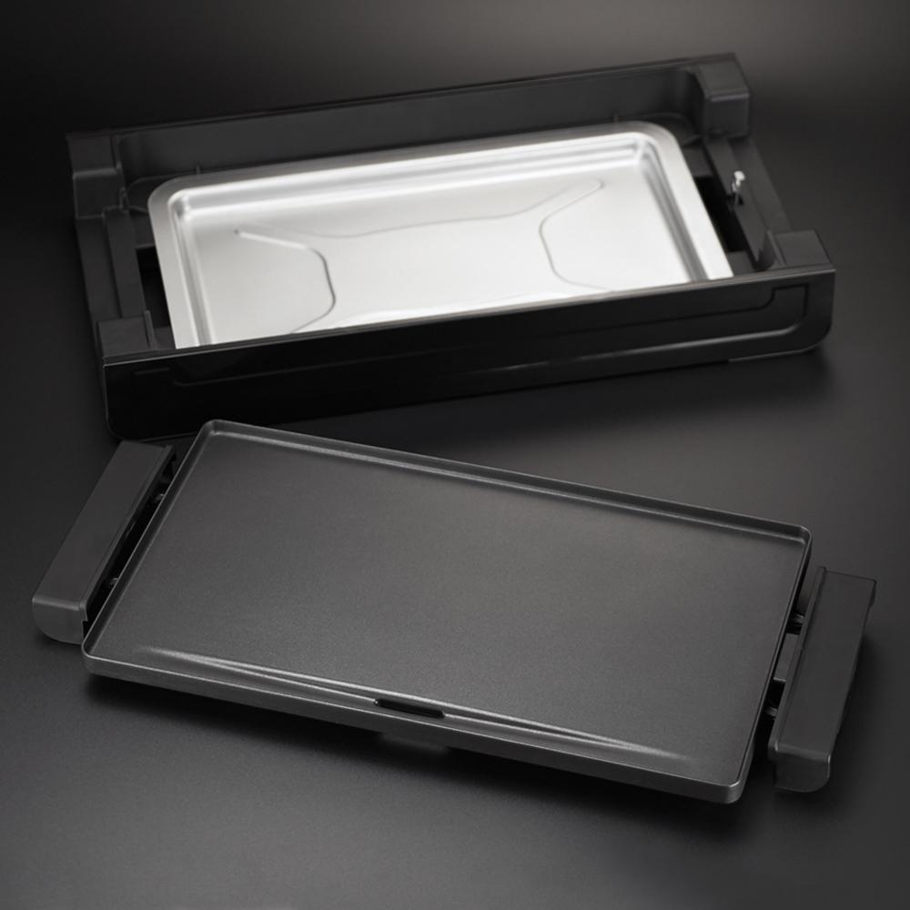 Vaření s touto plotýnkou je také relativně zdravé, jelikož konstrukce plotýnky napomáhá odtékání přebytečného tuku bez ztráty chuti a šťavnatosti. Zabudovanou odkapávací misku lze vysunout pro zachycení přebytečného oleje.