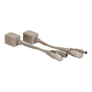 Sada redukcí, které umožňují přenost napájení pomocí ethernetového kabelu. Na jedné straně se připojí DC adaptér a redukce pomocí jej propojí do nevyužitého páru v ethernetovém kabelu. U zařízení se připojí další redukce, která napájení vyvede konektorem z ethernetového kabelu k zařízení, které je potřebuje energii. Pozor. Tento princip funguje maximálně při 100Mbps přenosu a do vzdálenosti 20m. Pokud nejsou redukce správně zapojeny, může dojít k destrukci připojených zařízení!