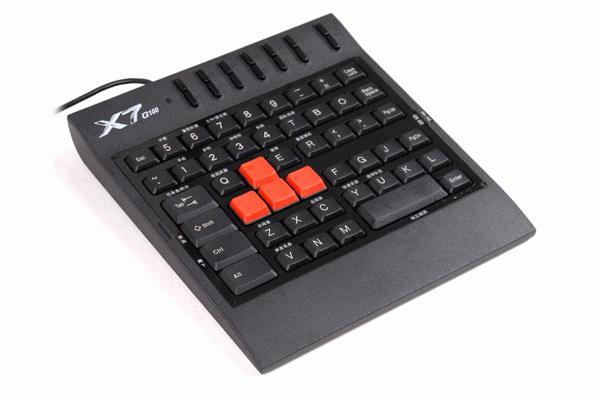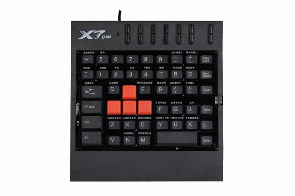 Klávesnice A4Tech X7 G100, herní klávesnice určená speciálně pro hráče PC her, rozložení "asdw" kláves ve tvaru směrových šipek + okolní definovatelné tlačítka, rozhraní USB.
