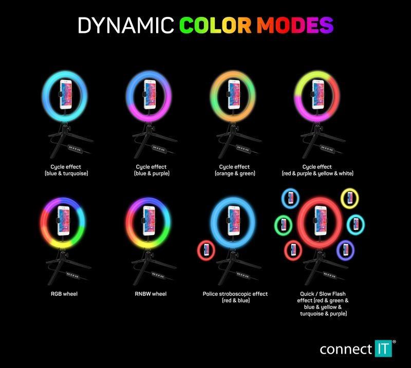 Studiové světlo CONNECT IT Selfie10RGB kruhové 10" RGB LED světlo