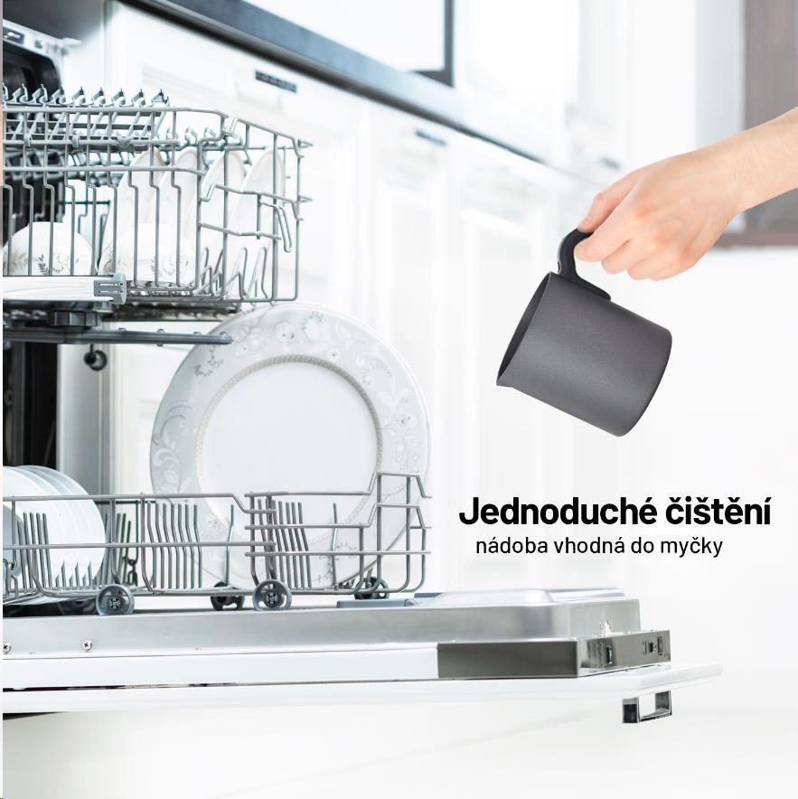 - 300 ml – Kapacita na ohřev mléka bez pěnění, třeba do dětského kakaa.