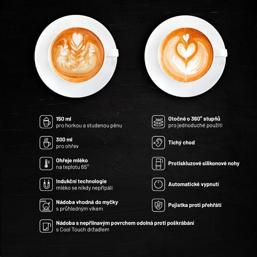 - Bez připalování – Díky indukční technologii ohřevu se mléko nikdy nepřipálí.