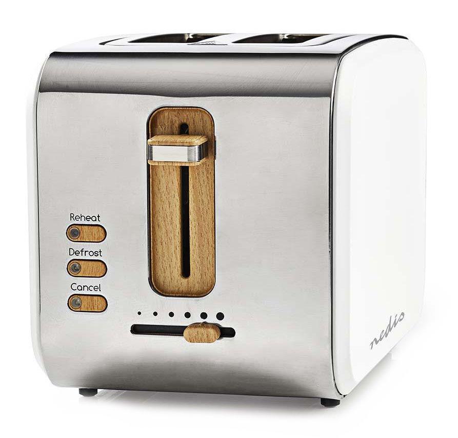 Topinkovač s výkonem 900 W, dvěma extra širokými otvory pro pečivo a šesti volitelnými stupni intenzity opékání. Dále disponuje tlačítky pro přerušení, ohřev a rozmrazování. Pro snadnou údržbu je topinkovač vybaven vyjímatelným táckem na zachycení drobků a díky povrchové úpravě z nerezové oceli v kombinaci s dřevěnými a gumovými prvky tento spotřebič vypadá stejně dobře, jako funguje.
