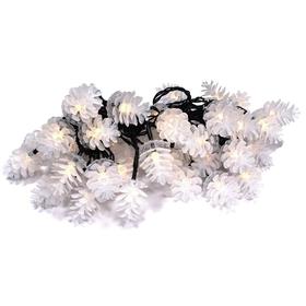 Vánoční řetěz 40LED Tvar šišky Časovač: 6/18 h Celková délka kabelu: 25 m Délka osvětleného kabelu: 20 m Délka přívodní šňůry: 5 m Počet LED: 80 Barva světla: teplá bílá Pro vnitřní i venkovní použití Krytí: IP 44
