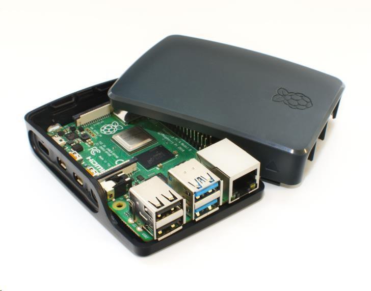 Oficiální mini-case pro Raspberry Pi 4 B. Vzhledem k absenci ventilačních otvorů je nezbytné desku Rpi4 chladit alespoň pasivním chladičem.