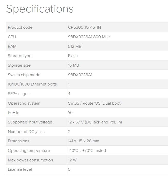 305-1G-4S+IN je operačním systémem SwOS či RouterOS poháněný 5-portový