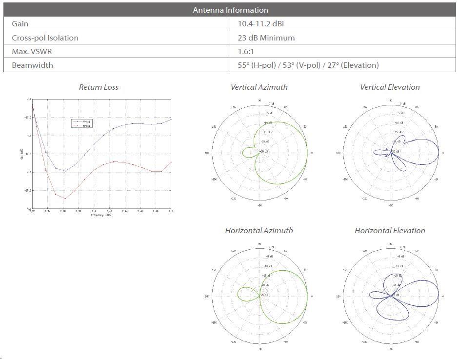 Anténa: 2 x 11 dBi interní