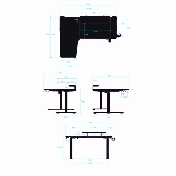 Herní stůl, 111x155x60 cm, 75-122 cm, elektricky nastavitelná výška, RGB podsvícení, držák sluchátek i nápojů