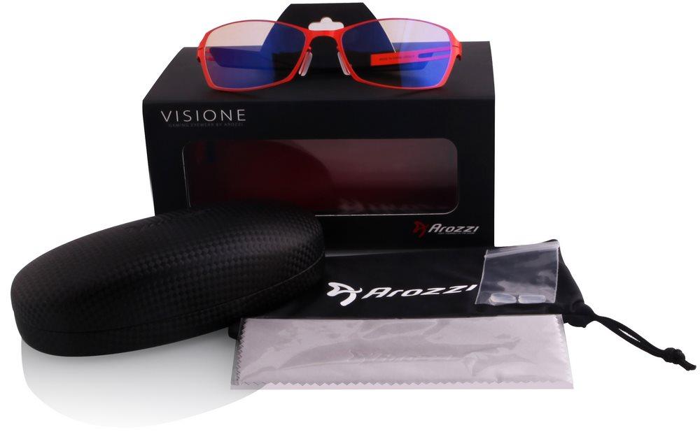 Představujeme Visione, nejnovější produkt od společnosti Arozzi pro zvýšení produktivity, pohodlí a doby strávené hraním her na PC. Brýle Visione pomáhají díky ztlumení potencionálně škodlivého modrého a bílého světla eliminovat nežádoucí artefakty, zvýšit čistotu obrazu a ostrost vidění. Nošením brýlí Arozzi ulevíte očím od únavy a můžete se nerušeně zaměřit na hraní a zábavu. Brýle filtrují přes 99% UV záření a mají čočky citlivé na světlo, které se automaticky přizpůsobí okolnímu prostředí. Součástí balení je praktický obal, pouzdro, hadřík na brýle a náhradní sedýlka.